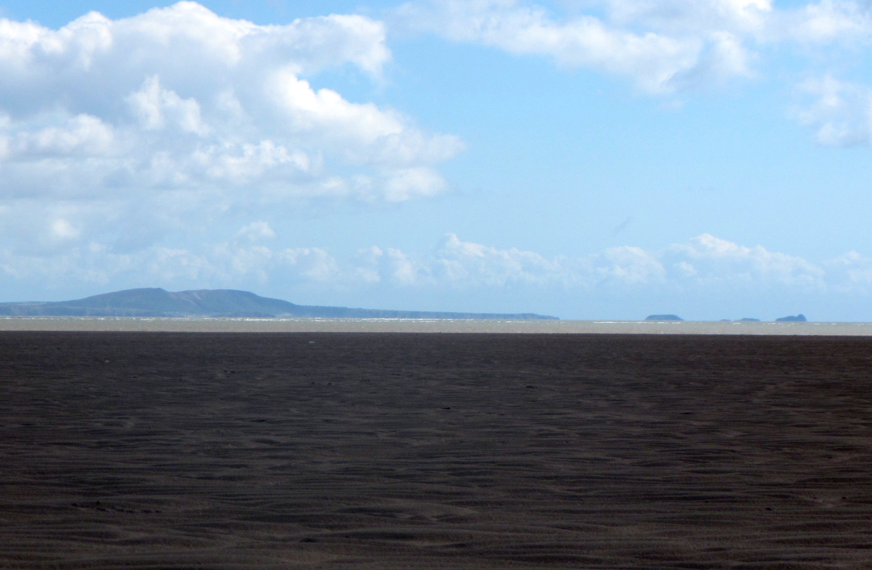 Skirting the edge of an MoD firing range, I emerged on the very tip of the Laugharne estuary. Laying my bike down in the long grass, I walked out on to Pendine sands. To my left the sea swept in to meet the river Taf as it flowed past St Clears and Dylan Thomas’ Laugharne. Ahead of me across the waters was the split pyramid of Rhossilli Down and the long, rearing line of Worm’s Head. To my right, the bare flat expanse of sands swept along the coast as far as the eye could see. The monastic bulk of Bardsey Island was an offshore silhouette. Any human figures nearby were nothing but coloured dots on the great expanse of flat, hard sand.