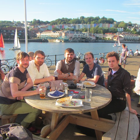 There was time remaining after the conference to explore the SS Great Britain and its surrounding exhibitions, but not, unfortunately, to climb the mainmast yard. Sunset found me bathing my feet in the cool waters of the Avon while sharing a few bottles of rosé with Bristol’s Perspectives from the Sea research group, whose brainchild this conference had been. The waters before us, once thronged with ships of the empire sailing to and from every coastline on Earth were filled with paddleboarders and sculling teams and sailboats going about. It was a perfect evening. By dint of fast walking and diligent inquiry, I even found my way back to the station in time to catch the 11 o’clock train home – and that’s unheard of.