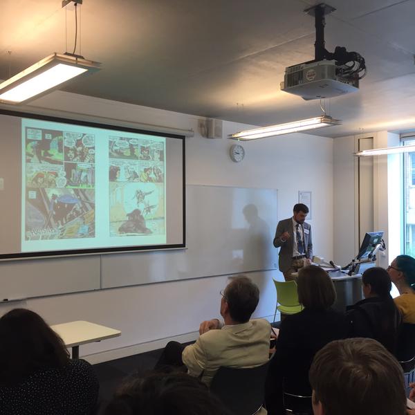 I missed the next panel while I was running around in circles trying to work out where I’d dropped my wallet, but the day wound up well with Kevin Corstorphine on American haunted house stories, and Nicola Bowring’s fascinating paper on how Gotham developed from a small Nottinghamshire village of fools and madmen to the grim and gothic abode of the Batman.