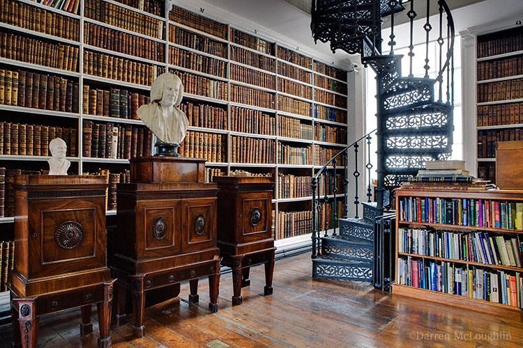 Conscious, perhaps, of one Guinness too many, I breakfasted frugally on a bowl of muesli, but stepped off the bus to Armagh with a song upon my lips. The location chosen for the second day of the conference was even more impressive than the day before. We were speaking in the reading room of the majestic Armagh Public Library, founded in the eighteenth century but extended, the archivist admitted, in the nineteenth. The old boards were perfumed with that fabulous old book smell I recollected well from many hours spent among the special collections and archives. An original edition of Gulliver’s Travels, with the author’s own corrections, was proudly on display amongst the manuscripts, incunabula and rare editions, while the library’s eccentric habit of storing books by size and not by subject meant that running an eye along the shelves was an entertaining treasure hunt.