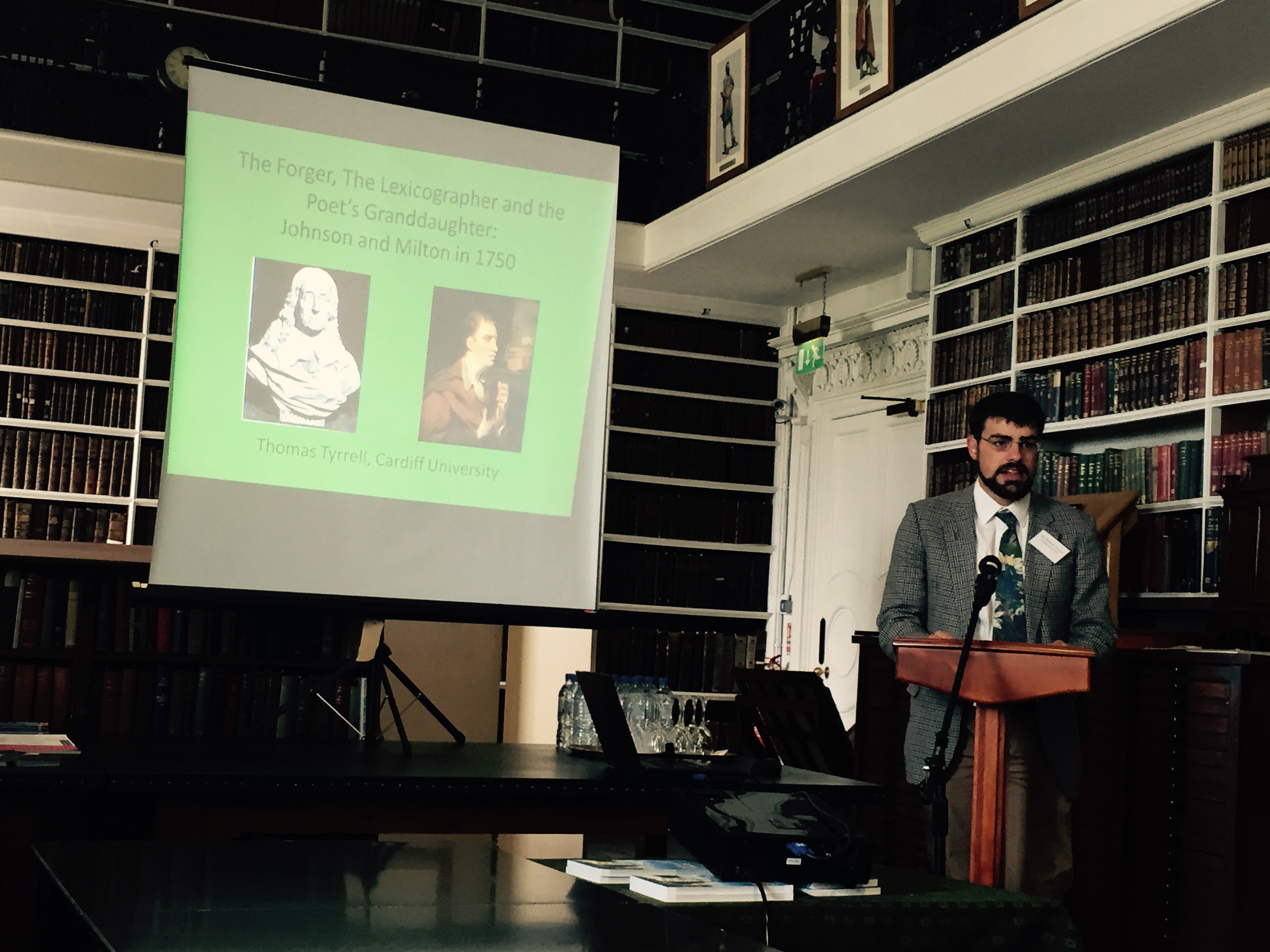 I opened the first panel with my paper ‘The Forger, the Lexicographer and the Poet’s Granddaughter: Samuel Johnson and John Milton in 1750’ and I was followed by a pair of enthusiastic and knowledgeable papers – Sophie Liu’s on paper wars and crises of succession, and Cameron Quinn’s on the French authors Voltaire and Jean Meslier. Sadly in our enthusiasm we had all over-ran, and were limited to one question each, which was a disappointment as well as something of a relief.